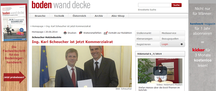 1920年,奧地利誕生了一個(gè)傳奇的木地板品牌——史迪萊克(SCHEUCHER),由Werner.von.Steirer 建立,總部位于施蒂利亞。它是歐洲四大拼花實(shí)木地板公司之一,F(xiàn)EP 歐洲實(shí)木鑲拼地板廠商聯(lián)合會(huì)終身常任理事單位;2007年,史迪萊克董事長Karl Scheucher先生當(dāng)選歐洲木地板工業(yè)協(xié)會(huì)(FEP)新一屆主席,并成為該協(xié)會(huì)終身榮譽(yù)主席;2016年,史迪萊克集團(tuán)正式成為IBU建筑與環(huán)境學(xué)院的官方成員。史迪萊克是歐洲少數(shù)擁有鎖扣技術(shù)使用權(quán)的木業(yè)集團(tuán),以優(yōu)質(zhì)、璀璨奪目和高度精確的三層實(shí)木復(fù)合地板產(chǎn)品聞名于世,擁有三層實(shí)木“世界標(biāo)準(zhǔn)”的美譽(yù),產(chǎn)品銷往全球50 多個(gè)國家和地區(qū)。