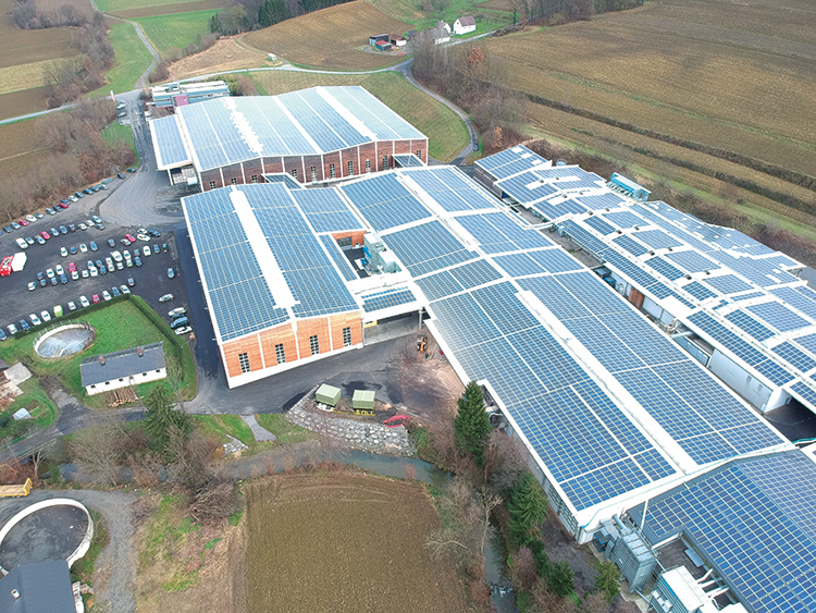 從2018年11月開始,史迪萊克的光伏系統(tǒng)投入運(yùn)營,屋頂面積約30000㎡,相當(dāng)5個(gè)足球場的面積,約有17000塊太陽能電池板,是目前奧地利最大的光伏屋頂系統(tǒng)。該工廠的輸出功率為5000 KWp,該容量可為大約1200個(gè)普通家庭供電。其中一部分電力用于生產(chǎn)實(shí)木復(fù)合地板,其余部分則導(dǎo)入公共電網(wǎng)。借助新光伏系統(tǒng)能夠減少約400萬公斤的二氧化碳排放。此外,史迪萊克將建立充電站,希望打造一個(gè)“全電動(dòng)”的運(yùn)輸體系。