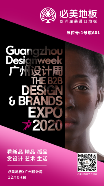 2020廣州設(shè)計(jì)周將于12月3—6日在廣州保利世貿(mào)博覽館+廣州國(guó)際采購(gòu)中心舉行,為期四天的展期預(yù)計(jì)迎接40萬(wàn)人次的觀展大軍。必美地板今年將再度出征,在老地方1號(hào)館A01展廳以更飽滿的姿態(tài)展現(xiàn)設(shè)計(jì)新生力,打造更具活力的新生態(tài)品牌設(shè)計(jì)展。