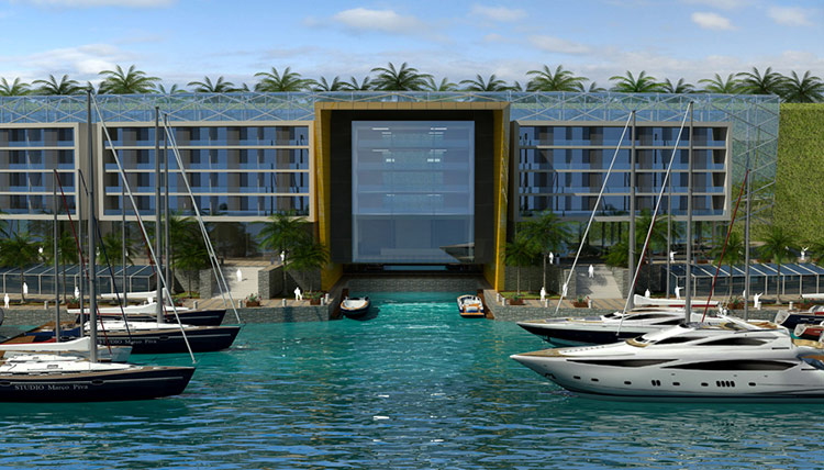 耗資140億美元打造的迪拜棕櫚填海項目聞名世界,Marco Piva被委以重任,參與其中4個島嶼之一的“朱美拉棕櫚島”項目設計。Marco Piva在該區域嚴密布置中到低等密度大樓,包括50棟世界級頂級別墅整體設計及配套的超五星級“海洋酒店”(Oceana Hotel) 和“寶冠酒店”(Tiara Hotel),其靈感來源于地中海,但以現代的語言去表達,采用最新的施工技術讓創意變現。