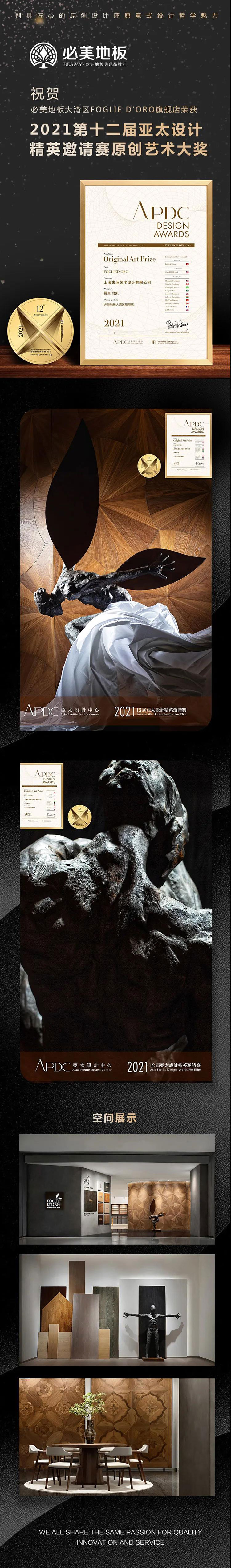 2021第十二屆亞太設(shè)計(jì)精英邀請(qǐng)賽原創(chuàng)藝術(shù)大獎(jiǎng)——FOGLIE D'ORO由必美地板大灣區(qū)旗艦店成功奪得。