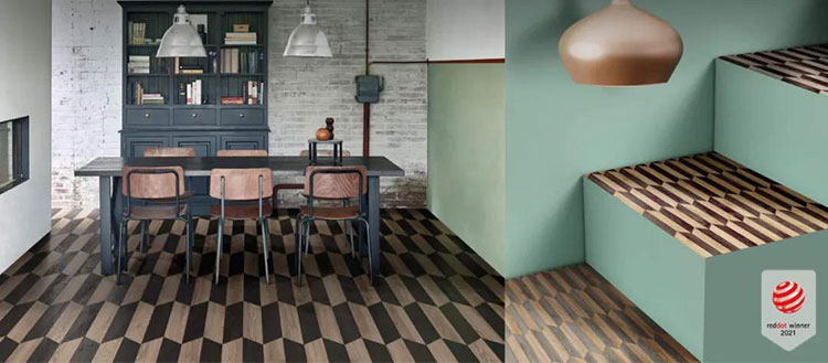 系列中有許多圖案設計,如柳條編織、魚骨拼、三角形、菱形、胡椒和人字拼,有五種小型和四種XL尺寸,支持模塊化概念。