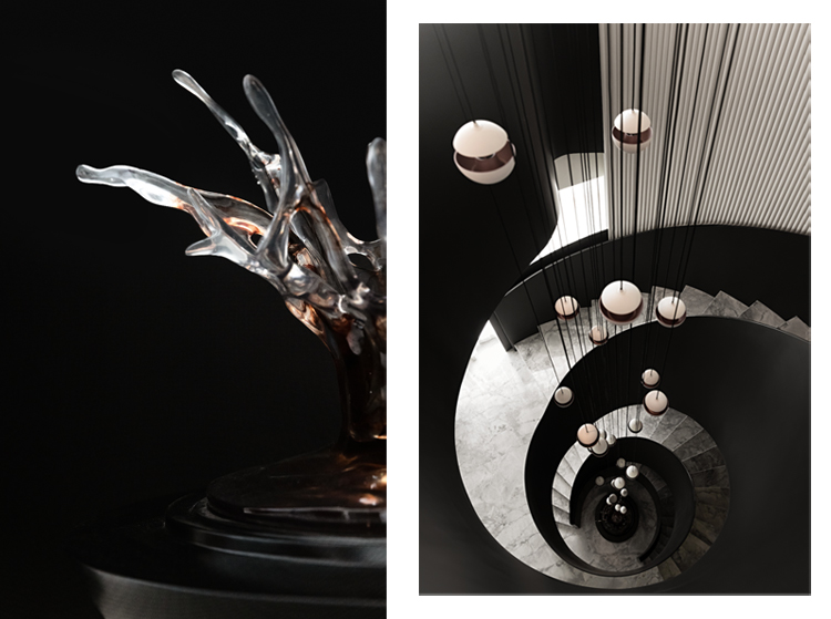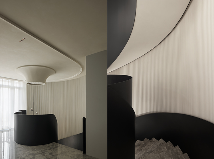 黑白主色調(diào)下的旋轉(zhuǎn)樓梯,明暗交織,似在演奏著訴說時(shí)光的鋼琴曲,優(yōu)雅而浪漫。