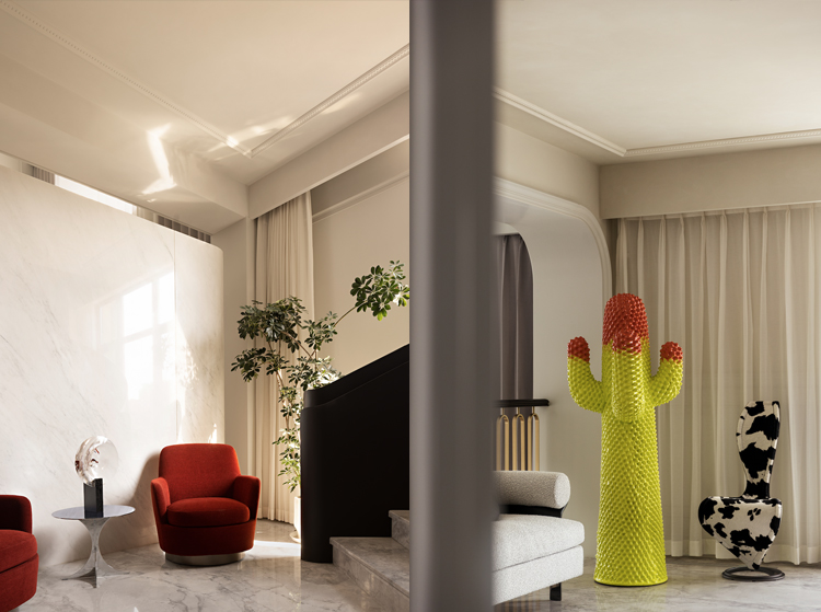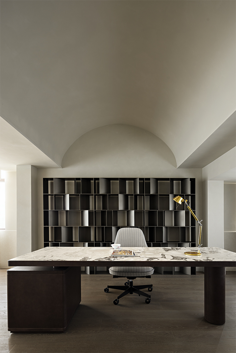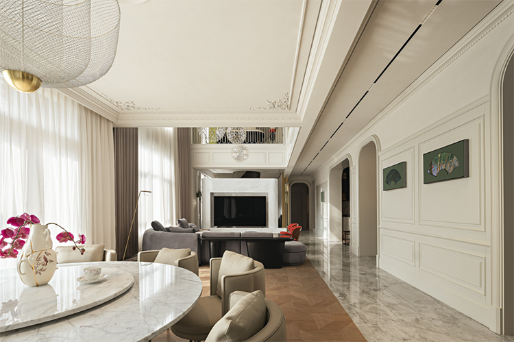 設(shè)計(jì)師以古典線條疊加圓拱形門洞,創(chuàng)造出空間的節(jié)奏與韻律。