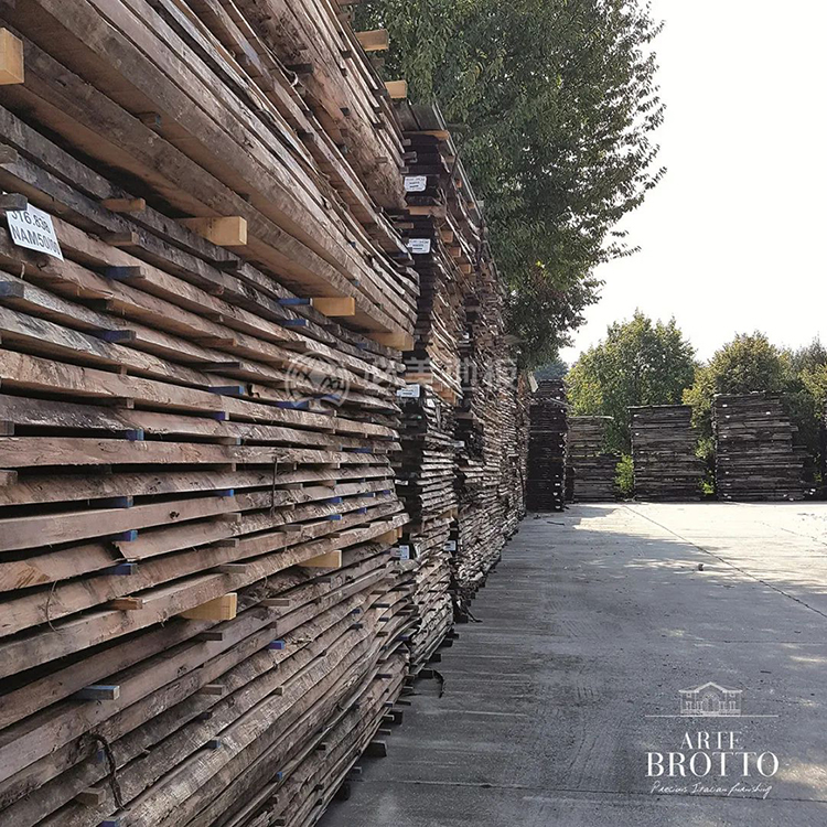 巨大的歐洲橡木和美國胡桃木被保存在倉庫中,這是一個價值連城的木材儲備庫。它們整齊地疊放在一起,散發(fā)出高大寬闊樹木樹脂特有的香脂香氣。阿特布魯托是世界上唯一一家能夠保存大量珍貴的實木板材并將其制作成獨特家具的公司。