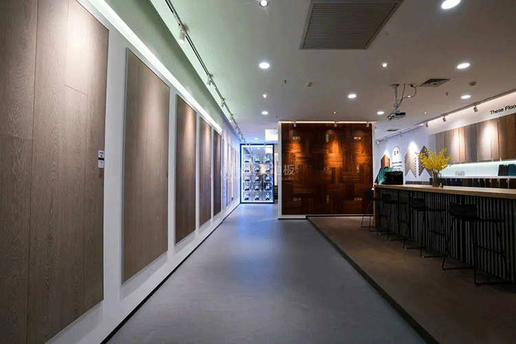 開放式布局的陳設,視野開闊,動線清晰簡單,以地板為介,以燈光為線,構造出靜謐、通透、舒適貼合自然的購物體驗空間,襯托出必美地板的品牌定位。