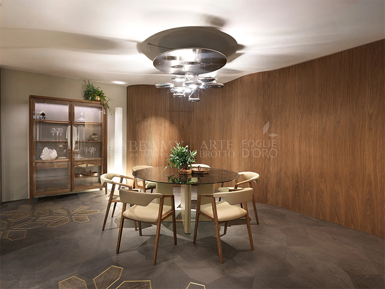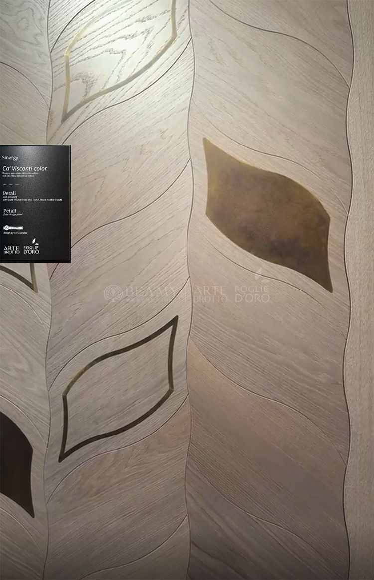 Petali拼花運用了自然的色差結合金屬材質及手工制作的黃銅線條和板塊,每件產品都是獨一無二的,在空間氛圍中賦予了所有的色彩和感覺。