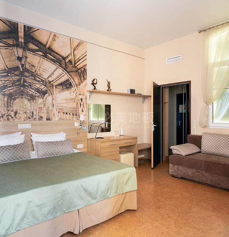 必美環保騎士:當然有啊,還有亞麻地板呢!背面是一層軟木,自帶彈性和靜音功能。最厲害的是它能自然氧化出抑菌成分,從打開產品包裝那一刻起,就會不斷地氧化出抑菌成分,微生物、葡萄球菌都很難在上面生長,天然抗菌防霉,對哮喘和易敏體質的人超友好!