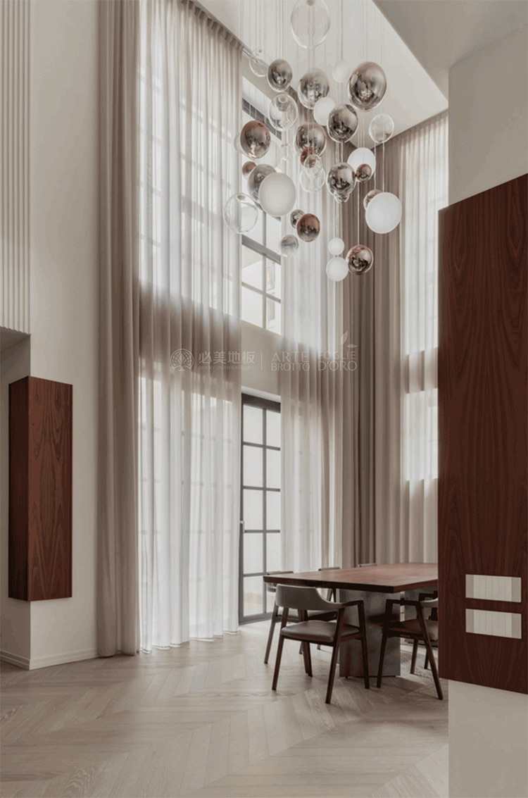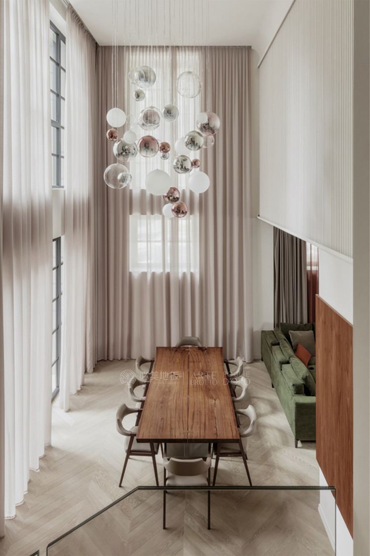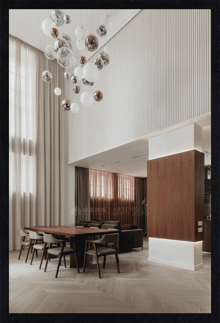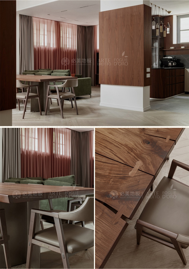 Floor | 必美阿特·布魯托Vero維羅桌、萊昂納多系列L31皮革椅子、Relevo系列模塊化3D木墻板、Tribeca 3D平面護墻板、必美菲列德羅定制人字拼木地板