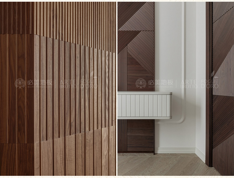 3D護墻板是意大利的高奢定制,采用的是淺浮雕銑削加工工藝,使木板更加的呈現3D效果,精選穩定性極強的胡桃木和橡木。溫潤質樸的原木質地搭配精細的匠心設計,提升空間質感。