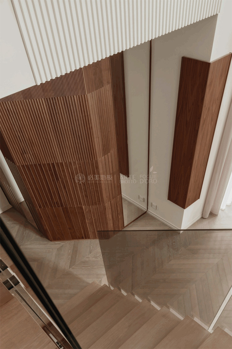 必美阿特·布魯托用于定制系列與家具的珍貴原料,源自雄偉壯闊的歐洲硬木森林。我們在這個私人住宅項目中發現了莊嚴而富有啟發性的空間維度,在這個項目中,Relevo 模塊化 3D 木墻板與客廳平面木墻板交錯鋪陳,在沉靜而莊嚴的空間里重現了森林的原始高度——提醒我們,一切非凡皆始于那片挺拔的自然綠暮。