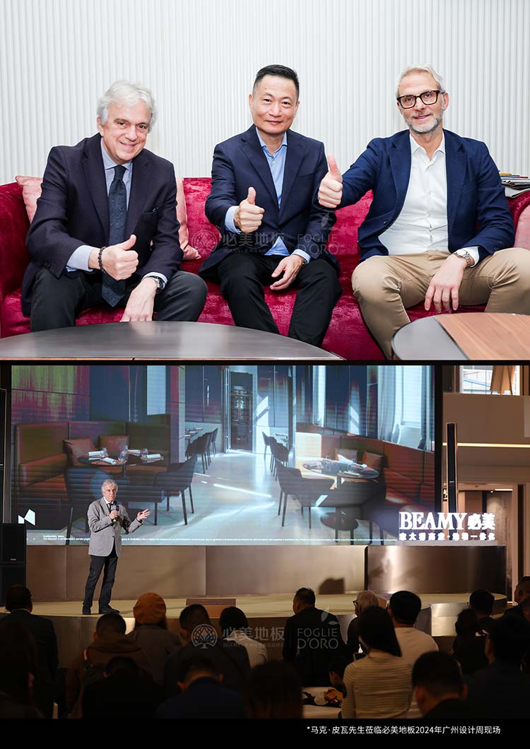 唐忠漢先生蒞臨必美地板2024廣州設計周現(xiàn)場,共鑒意大利頂奢木作!